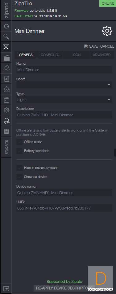 The next controller is the Zipatile. In general, Qubino products work great with this controller, so this Mini Dimmer shouldn't cause too many problems.