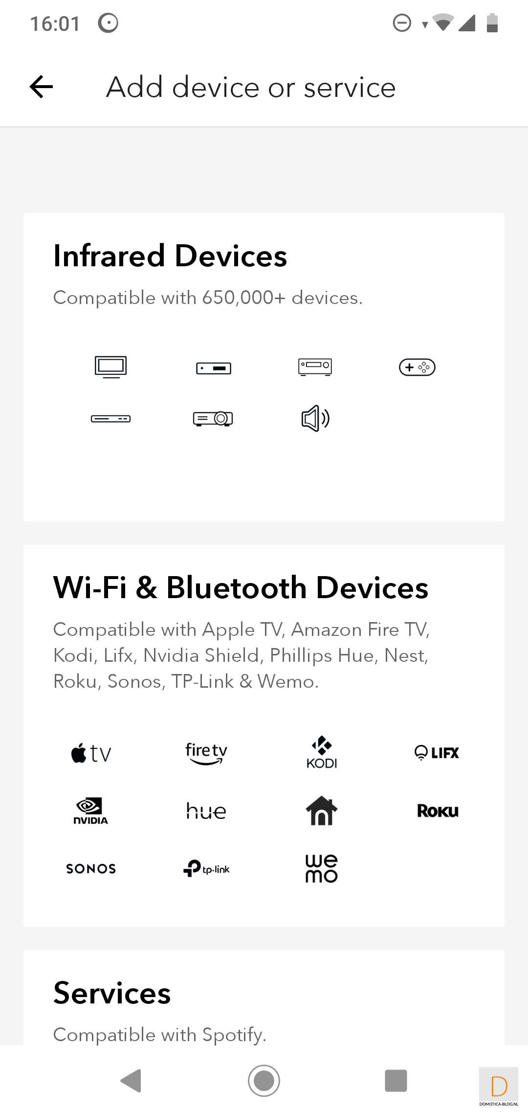 As you can see, infrared devices are added without any problems. What is striking is that you have to point the remote properly at the device you want to operate. This is because it does not have an IR blaster such as with the Logitech Harmony.