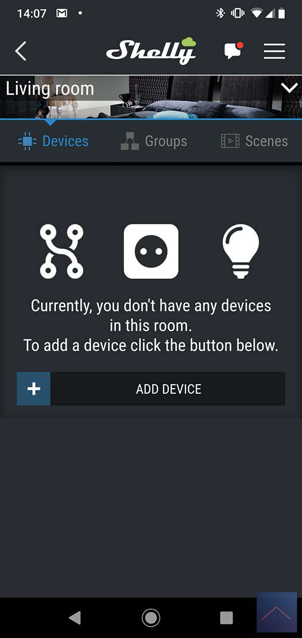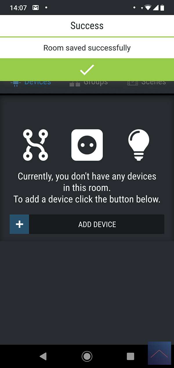 When we have put the power on, we restart the APP and click on "add room", we first have to create a room to add a device.