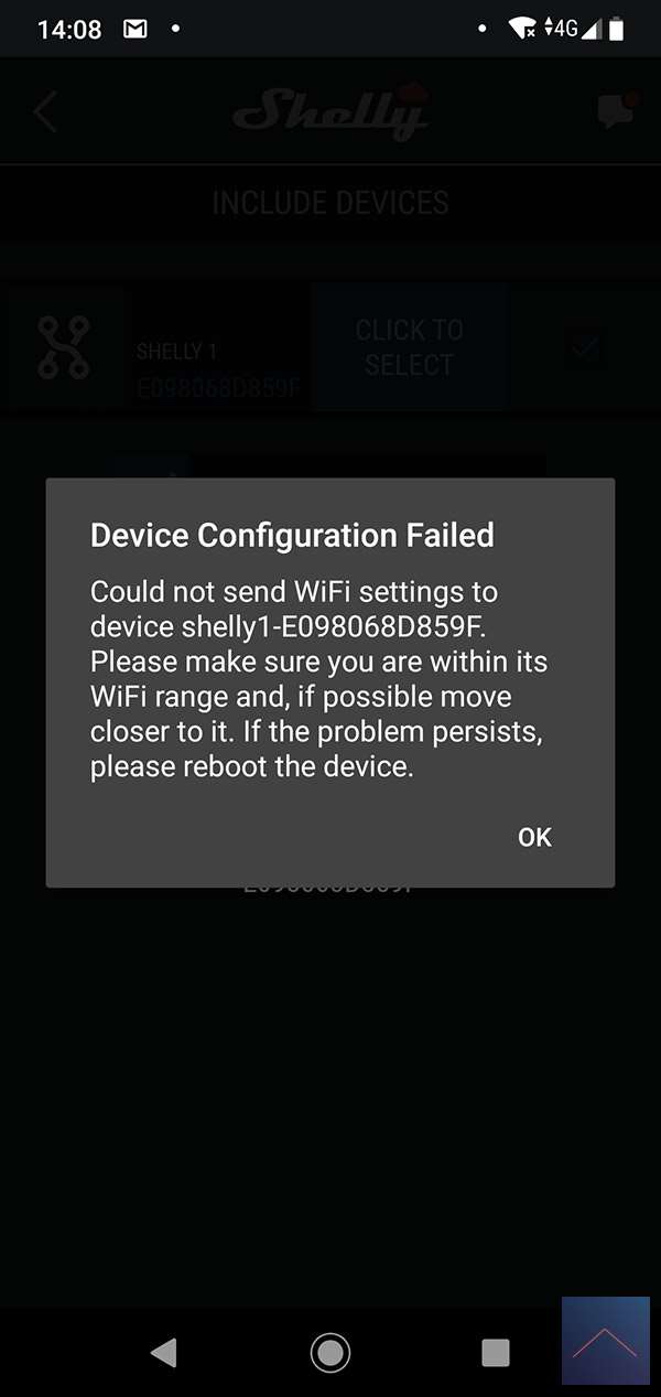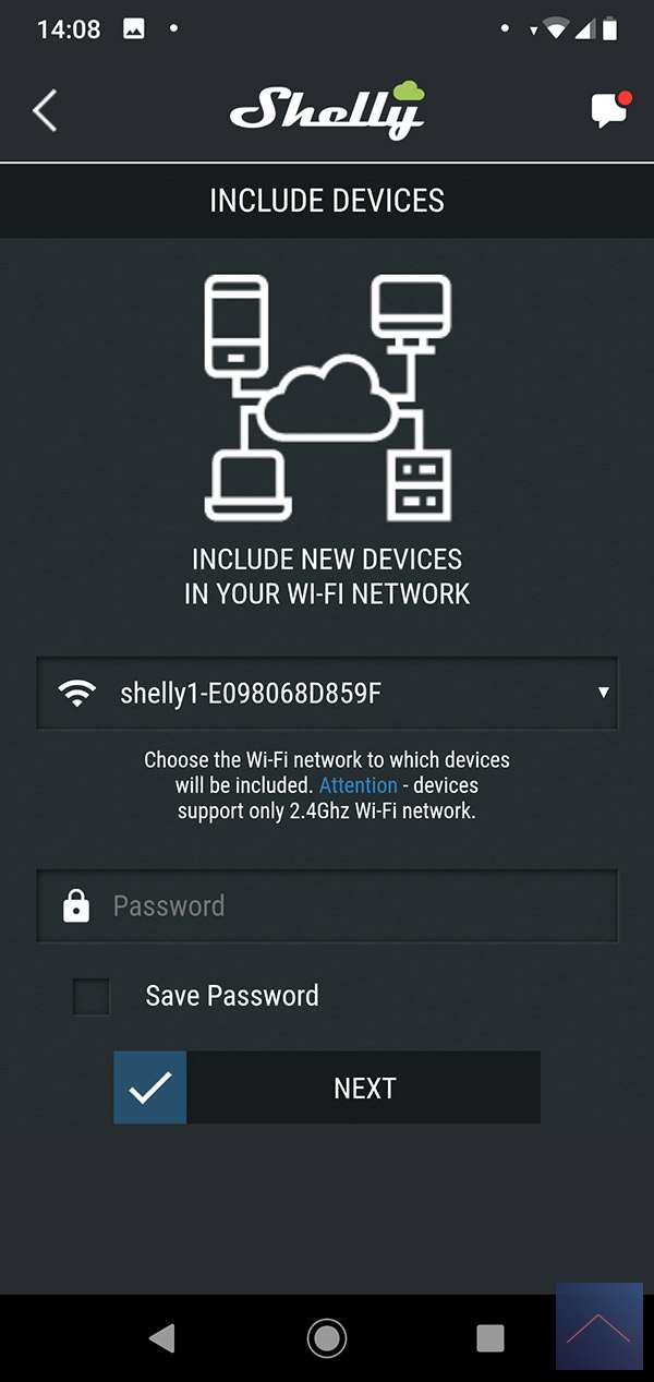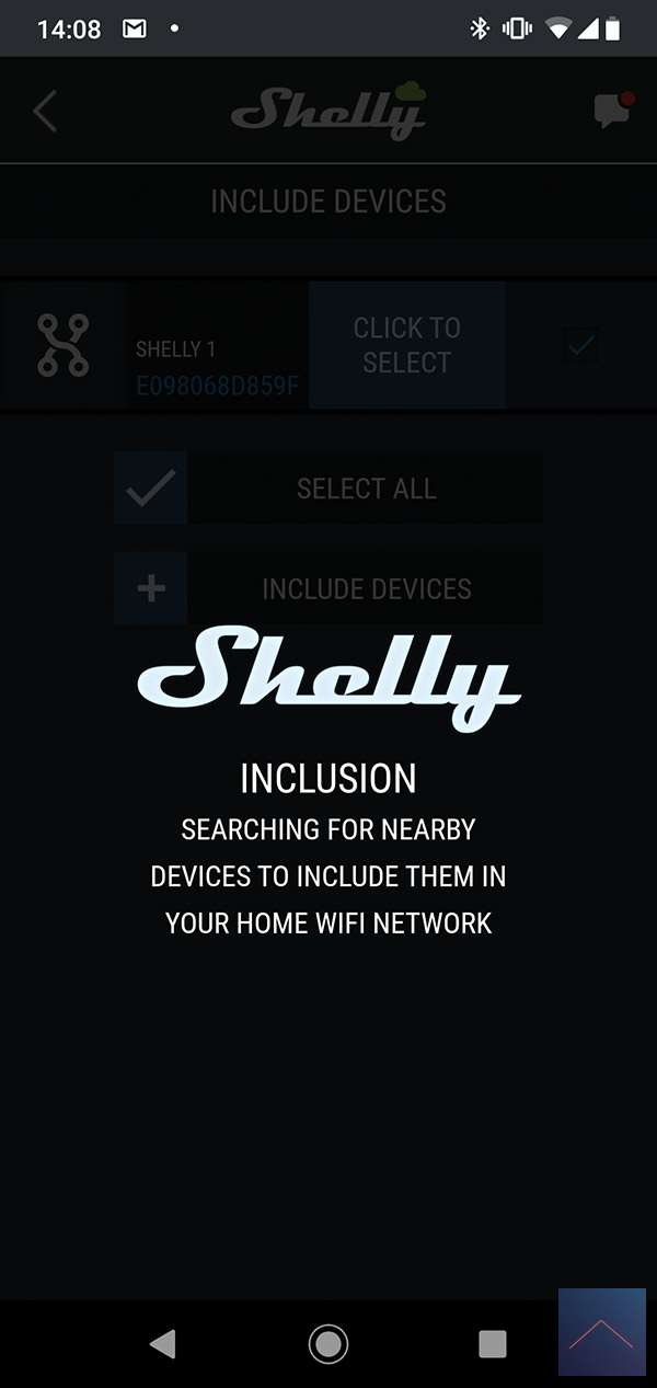 If we have a room we press "add device" to add the Shelly 1. He searches for the shelly 1 via your mobile. He is not yet connected to your own network. To achieve this, he creates a temporary hotspot. This connects your phone again (so it is true that you do not have internet for a while) to subsequently configure it for your own WiFi network. Make sure the Shelly is close to your phone.