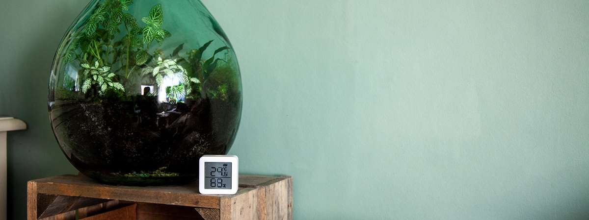 You can of course also see the values in the APP. It is powered by 2 AA batteries and has a small foot to allow it to be placed at an angle.