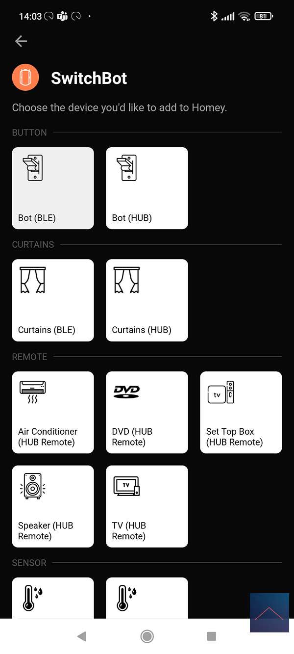 If you really want to make things smart, a real smart home controller is of course the best option. The Homey is such a controller that allows you to create more complex rules and easily add devices. The latter requires you to have an APP. This is the case for the SwitchtBot. So we're going to add it.