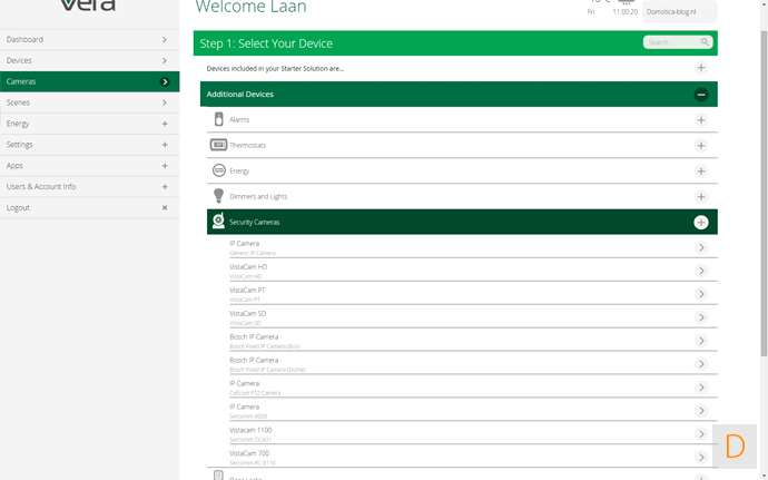 Via this screen you can connect a camera to your Vera. The advantage of this is that it can also be viewed via the APP. So you no longer have to start a separate APP. There is a WIKI page with a list of supported cameras: http: //wiki.micasaverde.com/index.php/IP_Cameras