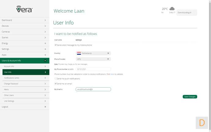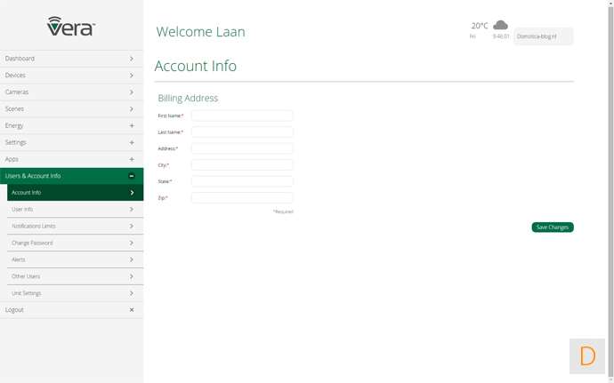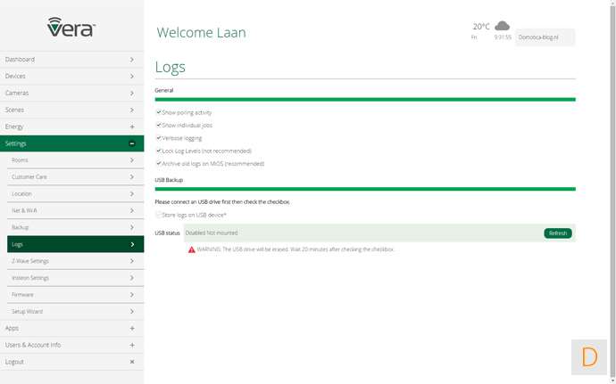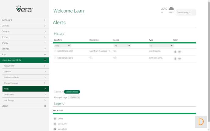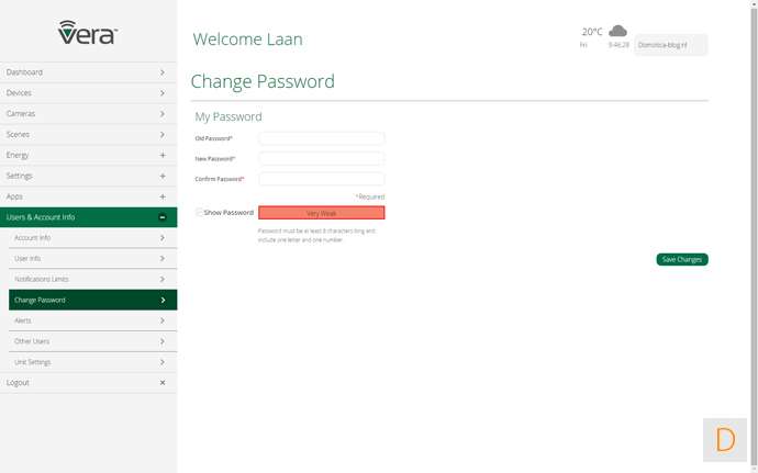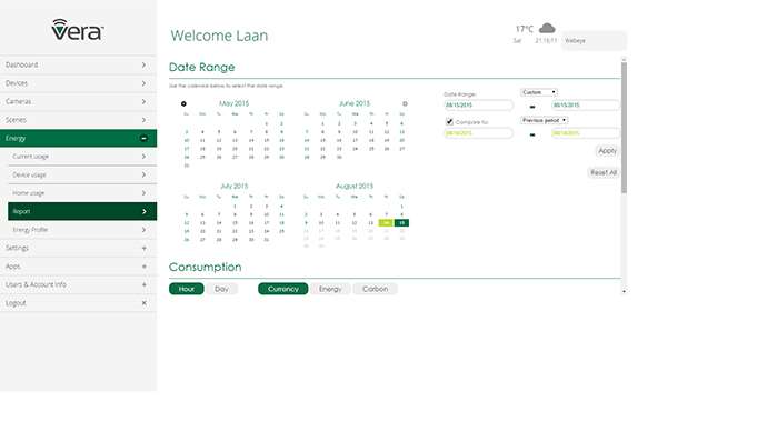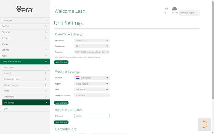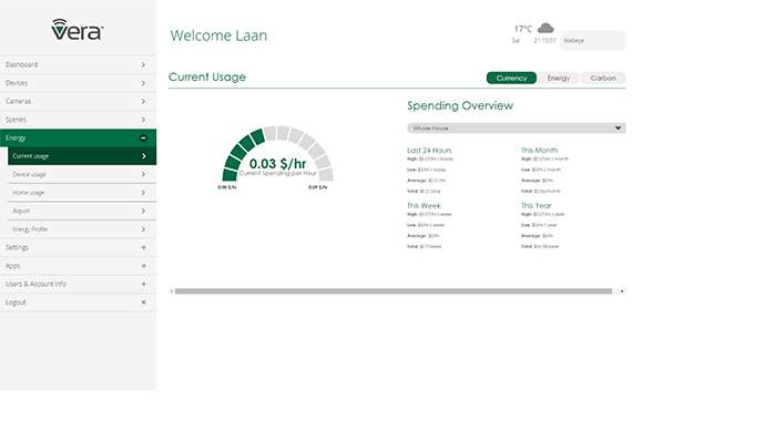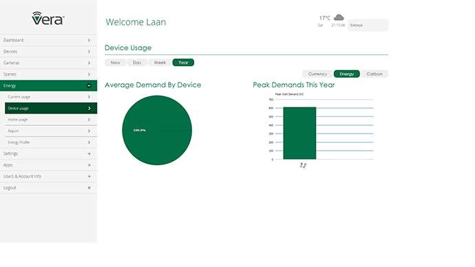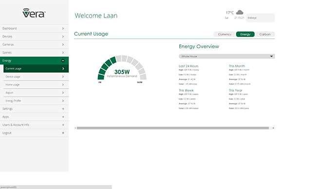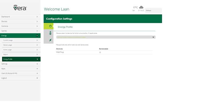The Vera has a very extensive energy management option. For this Vera uses the services of EchoLabs. The data is therefore passed on to an external party. Personally, I am not so devastated by that. It even states that your data will become the property of EchoLabs.