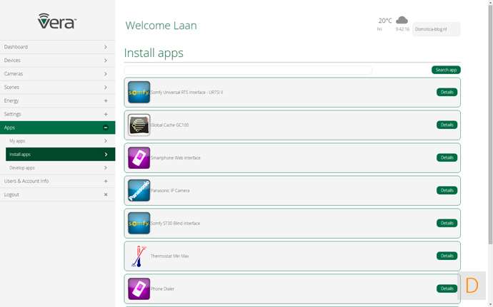 I have installed the Onkyo app myself. Installation is not complicated. You search for the app and press install. Unfortunately I didn't get the APP to work properly (he couldn't find my amplifier). This might have to do with the fact that my amplifier is not fully compatible with the APP. What I noticed is that, after installing the APP, the dashboard no longer wanted to load. After I had reset the Vera and had to wait a very long time, the controller came back to life. So you have to be careful with installing APPs. Making a backup first is therefore not a luxury.
