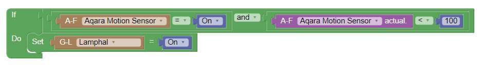 Because this sensor registers both movement and lux, it is of course logical that we make a rule with these 2 elements. We are therefore going to ensure that when the movement and a lux value of 10 is reached, the lamp may go on.
