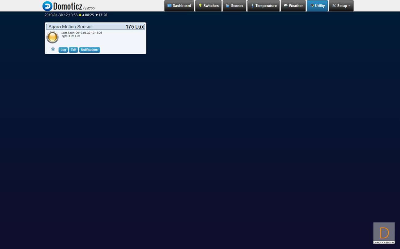 When you restart Domoticz I see the motion detector and the light meter appear on my devices. You can hang the sensor using the supplied bracket or you can also hang it without using this bracket by only using the sticker. With this last option you are somewhat limited in the suspension angle.