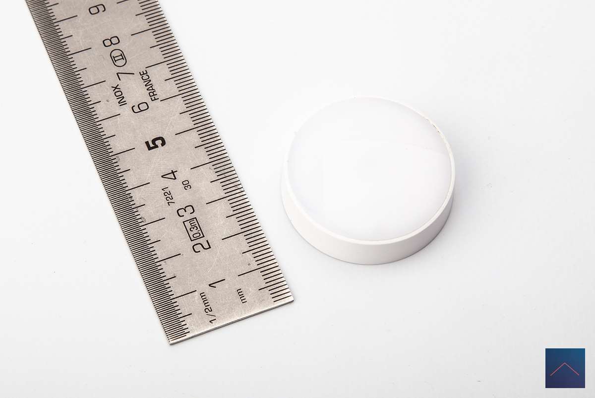 The sensor is super small at 40x40x12mm, so you can hide it reasonably invisibly. It has a white plastic edge and a transparent bulge at the front where the sensor is behind. I have not tested it myself, but according to Xiaomi it is waterproof. The range of the light sensor is 0-83,000 lux.