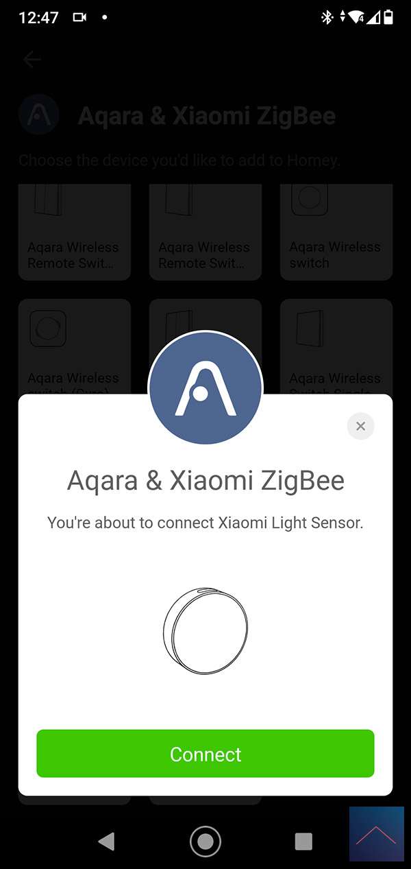 We will be the first to add this light sensor to the Homey. You can start the addition by logging into the Homey and going to your devices. You then press the plus sign and search for the Aqara light sensor. When you have found it, install the APP (if you have not already done so). Then you will be asked to press and hold the button of the sensor for 5 seconds. You have to wait for the LED to flash blue 3x. After this you can release the button. The Homey found the sensor almost immediately and I see it appear with my devices.