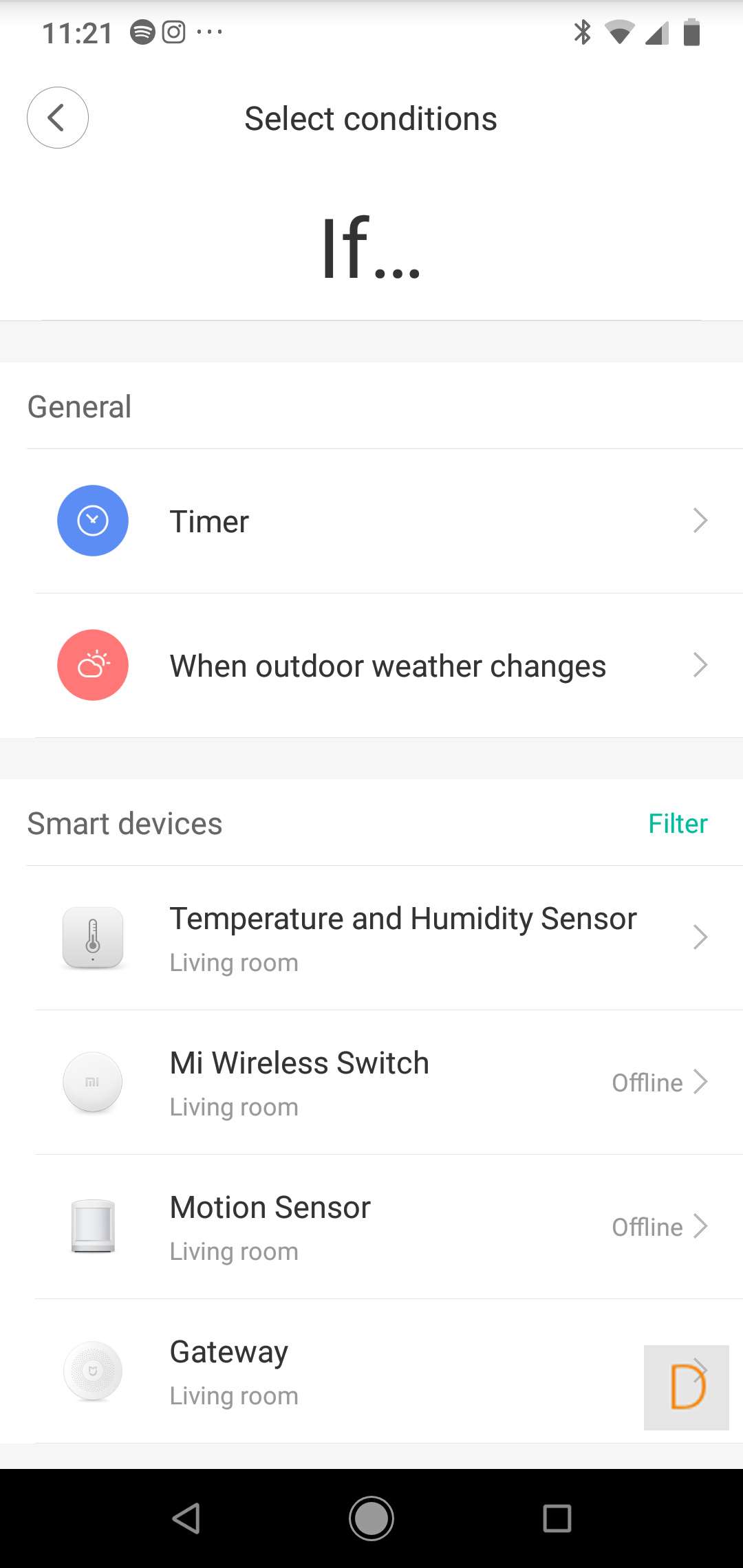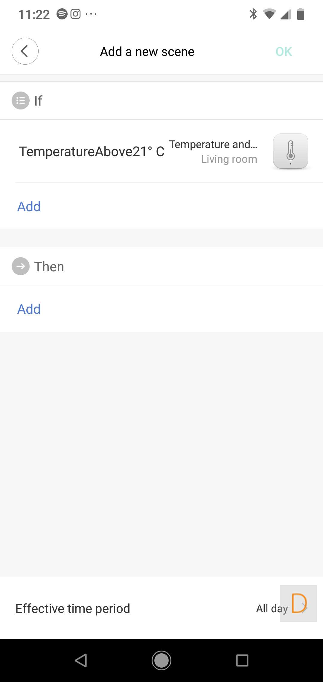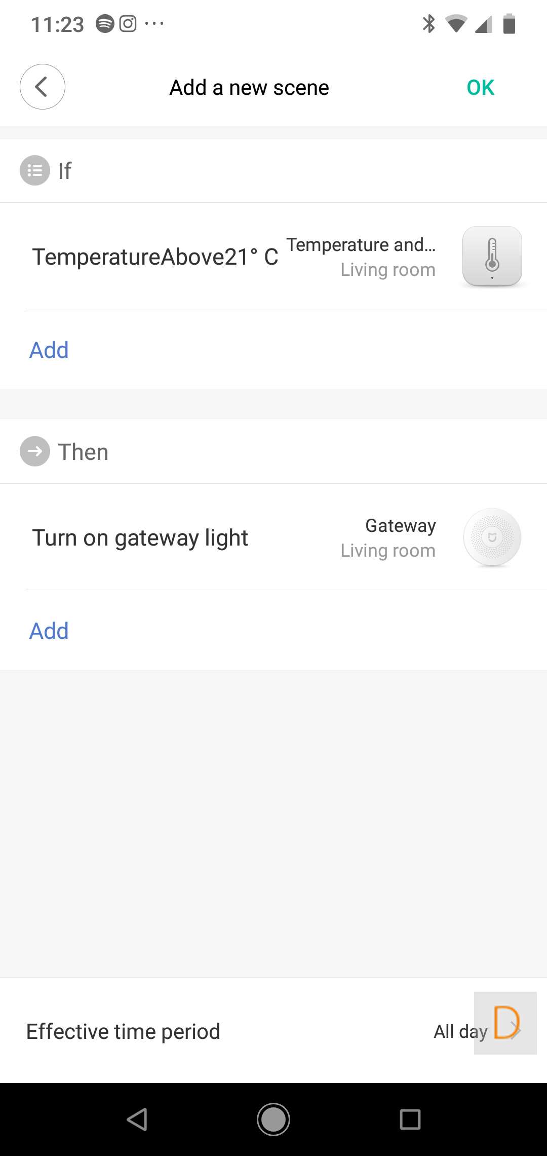 I don't have that many sensors in my gateway, so giving a good example is a bit tricky. To still leave the possibilities, I make sure that if the temperature exceeds 21 degrees, the lamp of the gateway is switched on.
