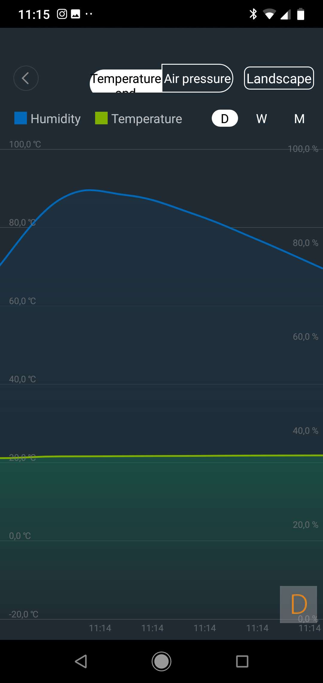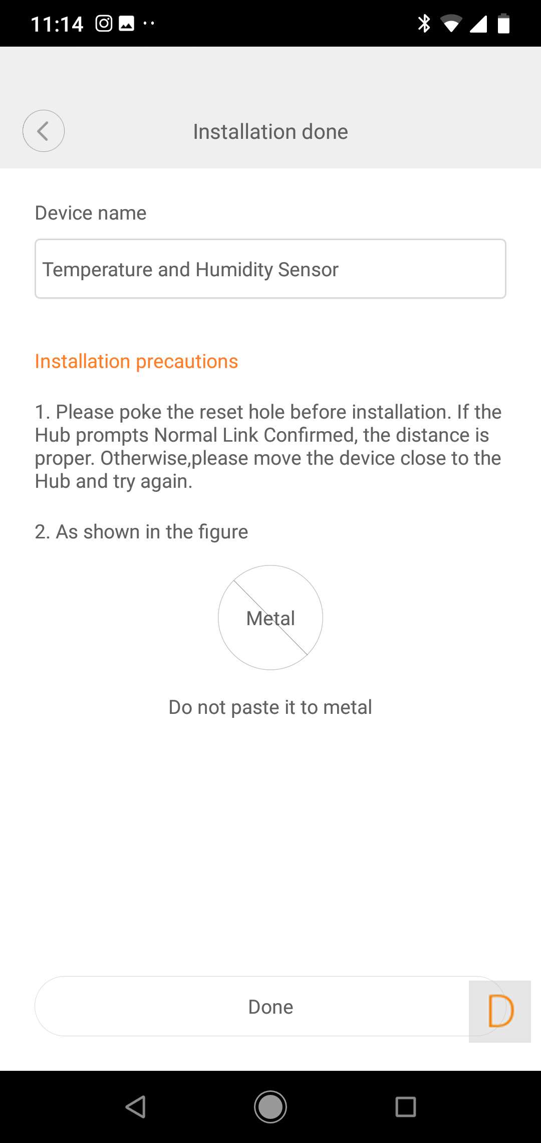 You can start the addition by 5 sec. hold down the button on the side. The LED on the front will blink 3x if the addition is successful. He was of course found neat. I see a temperature, humidity and air pressure appear. Apparently this sensor can therefore also measure the air pressure. The values come in quickly. As a test I held my hands around the sensor for a moment and you can see the temperature rise almost immediately.