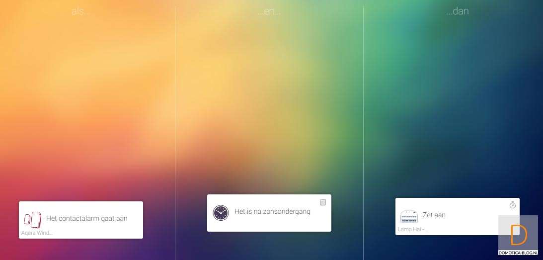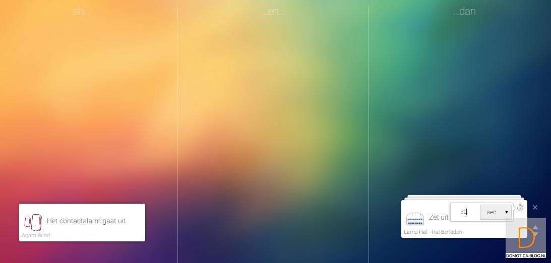 I would like that when the door opens, and it is after sunset that the lamp in the hall comes on. If I close the door again, the lamp must go out after 30 seconds. This rule can run all day, so I don't include the sunset in it.
