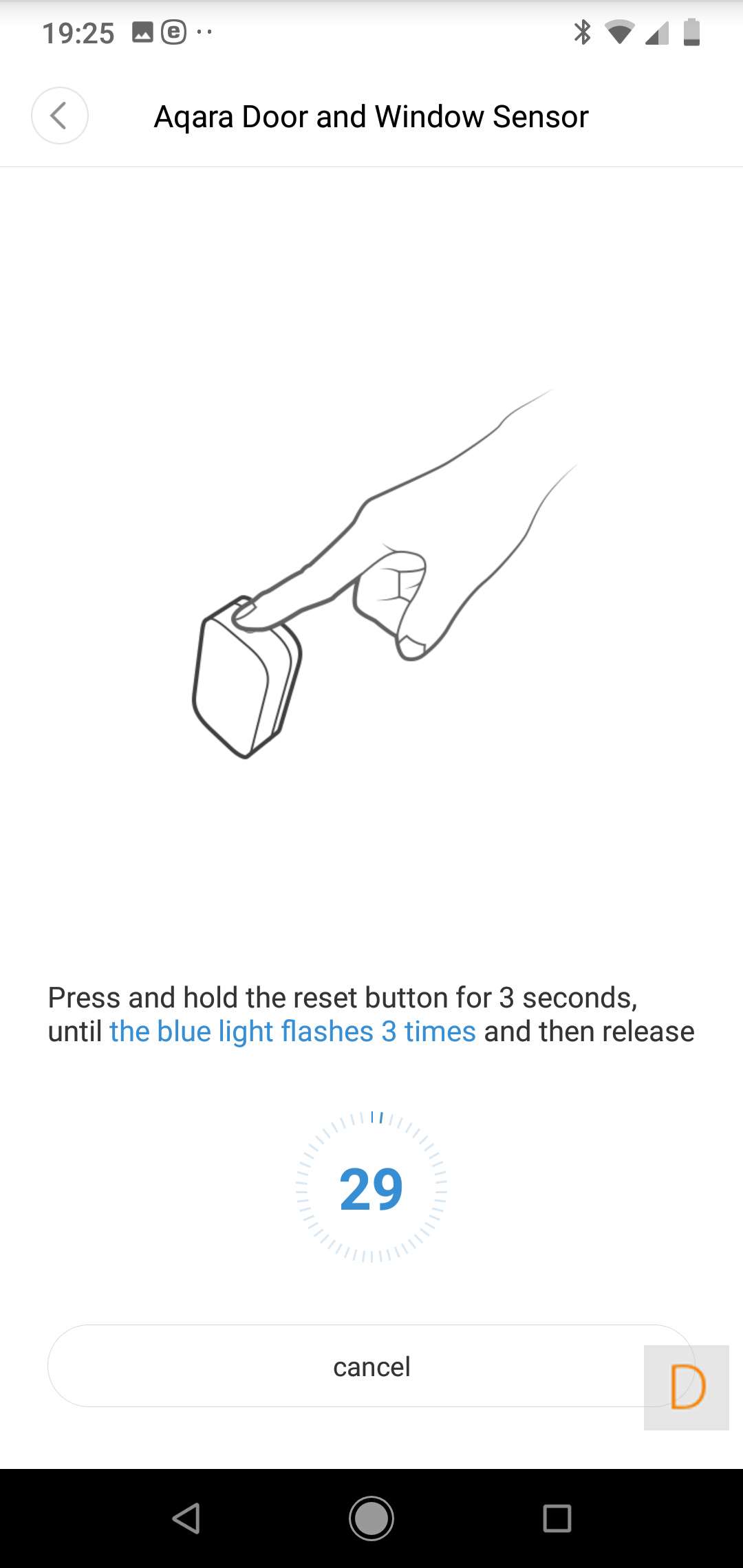To start adding, press the button on the bottom for 3 seconds. The LED will flash blue when the addition has been started and the gateway will display a nice Chinese text. So don't be scared.