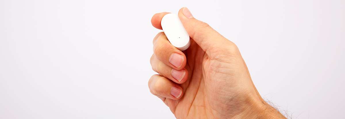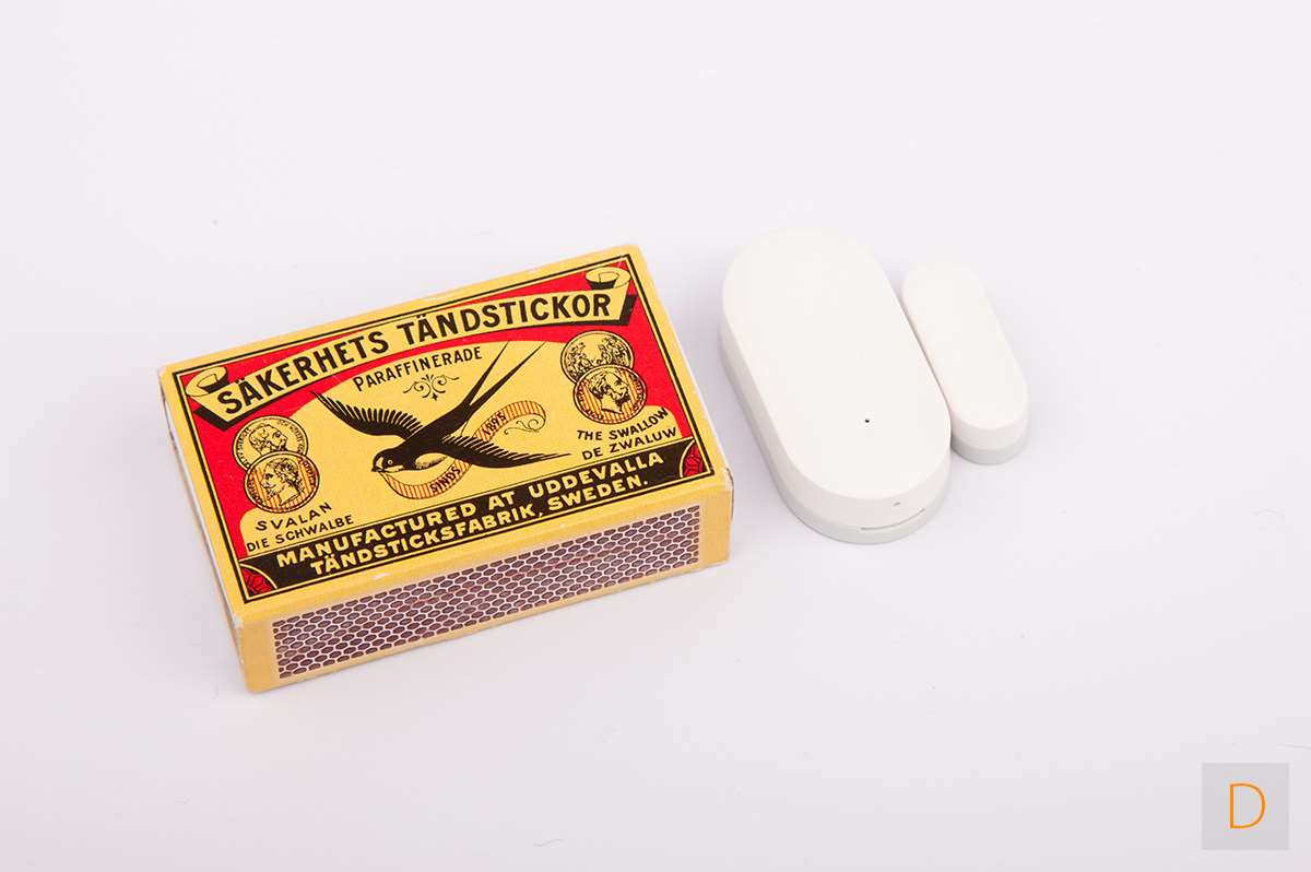 This set comes with a door and window sensor that you can use to detect whether a window / door is open or closed. What immediately strikes you after opening the package is the size. He is really super small with his 41x20x11mm. It is powered by a CR1632 button cell battery. Just like the gateway, it uses Zigbee. You can use the supplied stickers to hang it up. There is no possibility to screw it down.