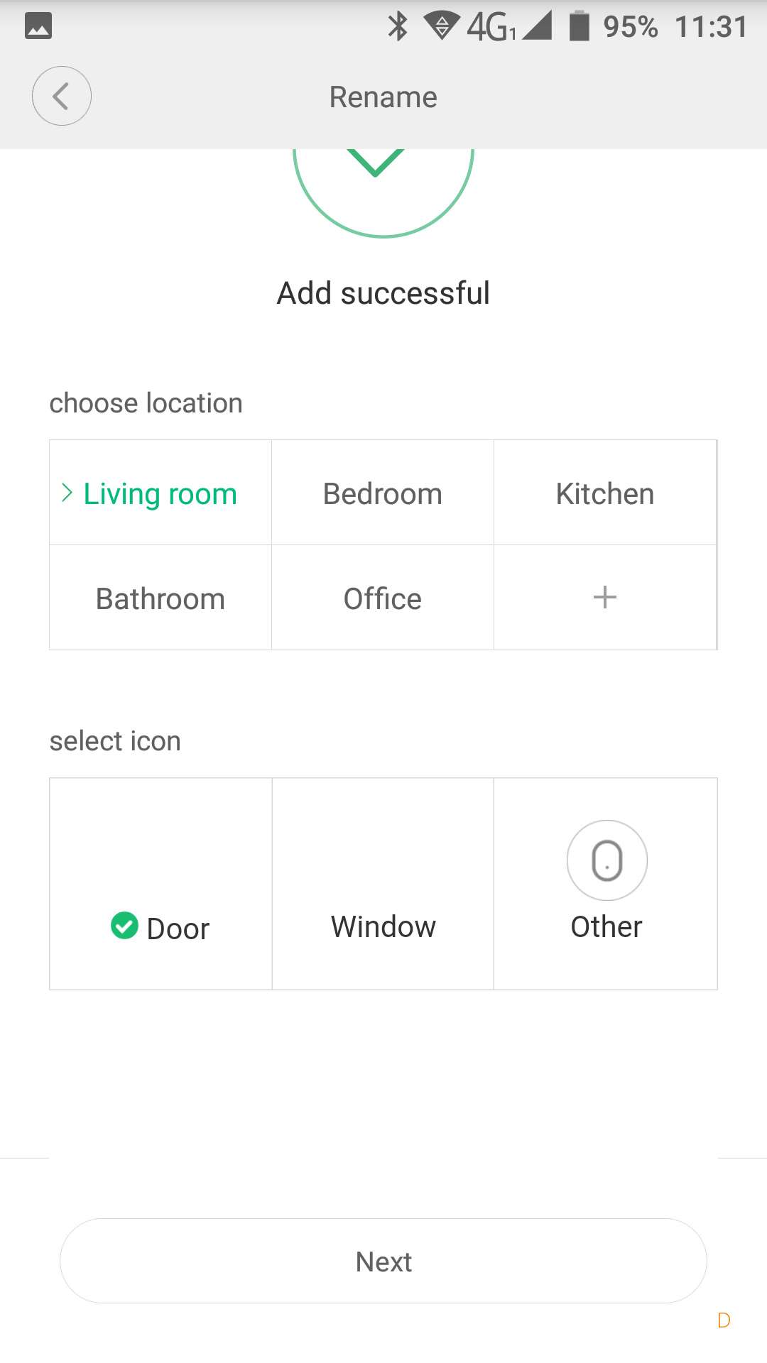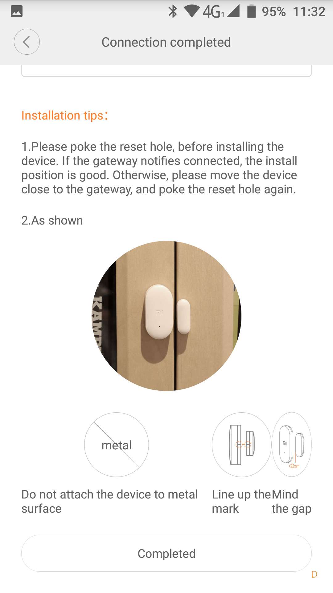 Installing this sensor continues by going to the APP and clicking on the plus sign to search for the door sensor. You can start adding it on the door sensor by pressing a pin in the hole. If the sensor hangs on its final spot, you have to press a pin in the hole again.
