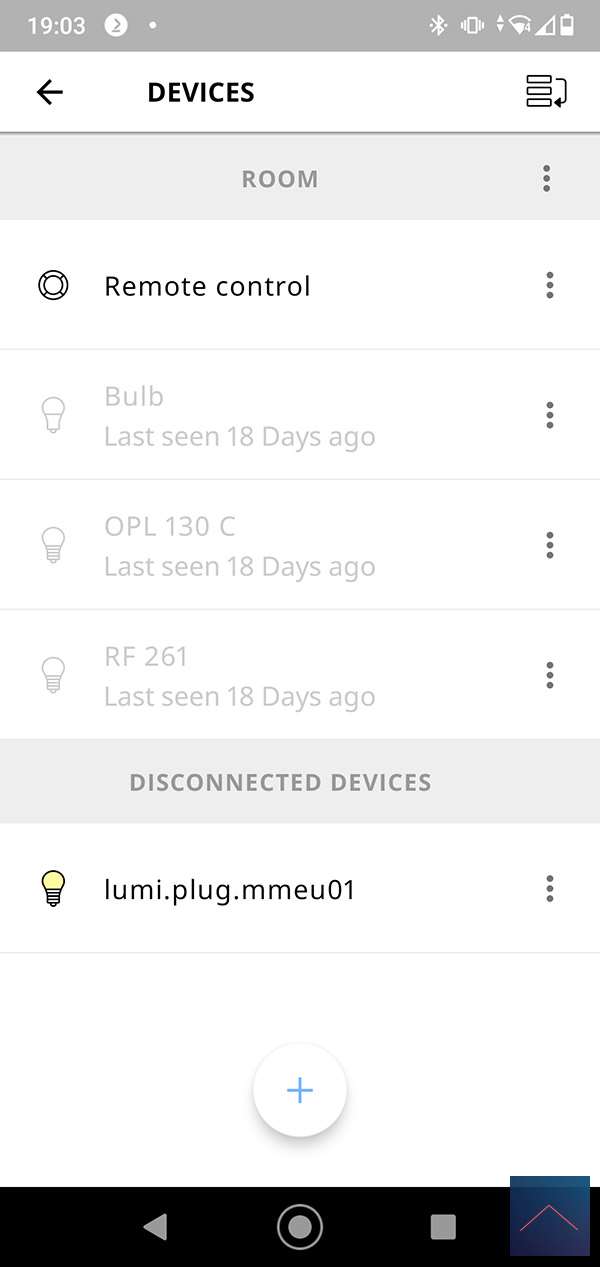 We start by logging into the APP and going to our settings (radar icon) and pressing manage lighting. At Ikea, a device must always be linked via another device, such as a remote control. We will also do this with this plug. To start adding we press the plus sign and select the plug-in switch. We then select the remote control. After this we press the button (of the plus) at the top for 5 seconds and then the button of the remote control for 10 seconds. I see the plug flashing red and blue and the light on the remote also flashing. The APP then gives a message that it has found a Lumi plug. But unfortunately it is immediately offline and I cannot operate it.