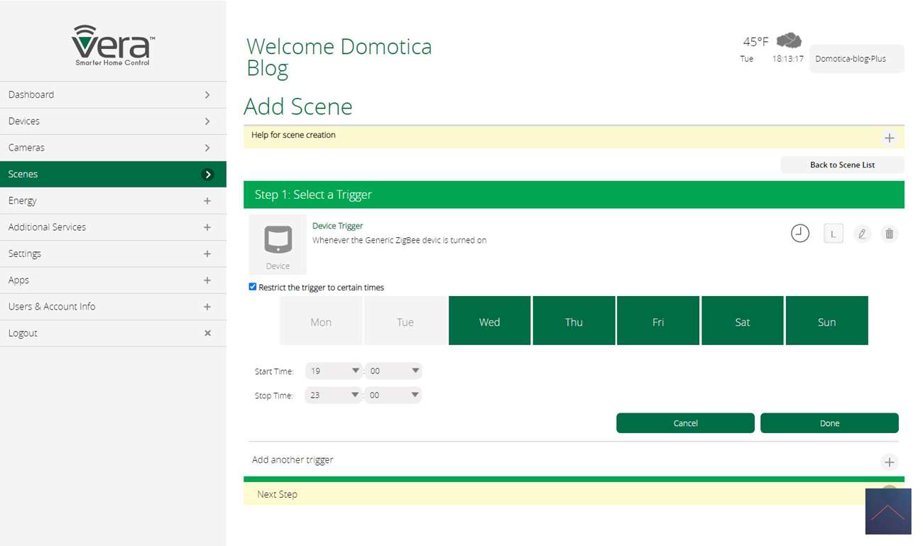 We give as an example that if the plug is switched on and it is between 19.00 and 23.00 (on a won/don/fri/sat/sun) that the ECO dim is also switched on.