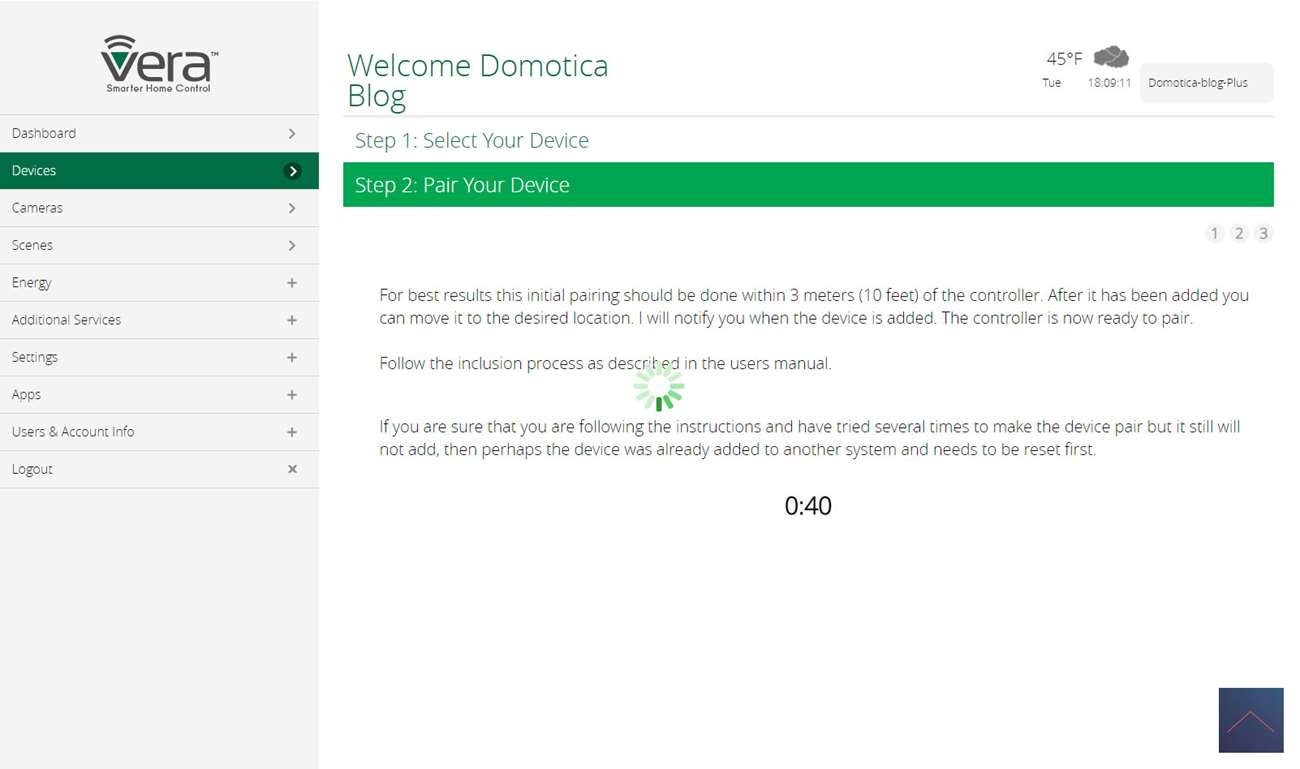 The smart home controller from Vera has support for the Zigbee protocol so adding it shouldn't cause too many problems. We start by logging into the Vera and going to our devices. We then click on "add device" and find the Xiaomi plug. Unfortunately it is not found, but we can try to add it as a "generic device". We then click on this and after a few steps the Vera asks to put the plug in learning mode. You can do this by holding the button at the top for 5 seconds. The LED on the front will first light up red and then flash blue.