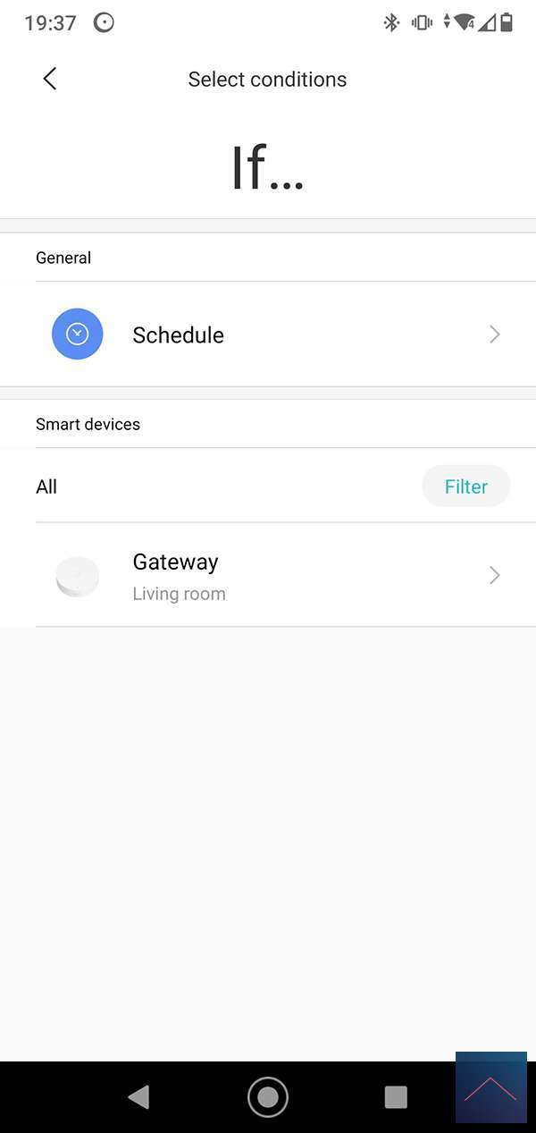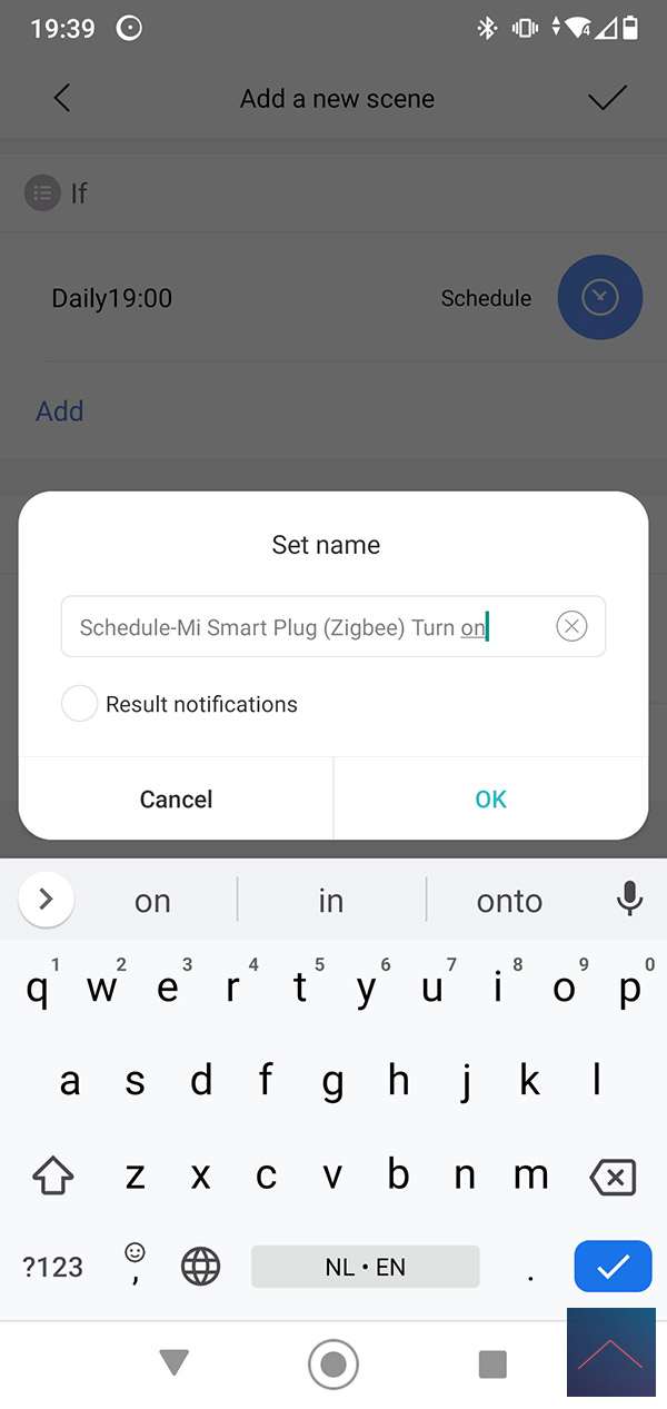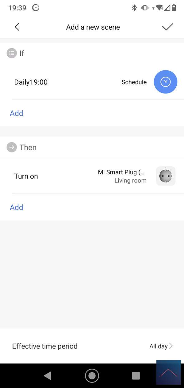 The automation options at the Xiaomi hub are somewhat limited, so making a very exciting example will not work. But we make sure that when it is 7 p.m. that the plug is turned on. You can easily arrange this via the "automation" option.
