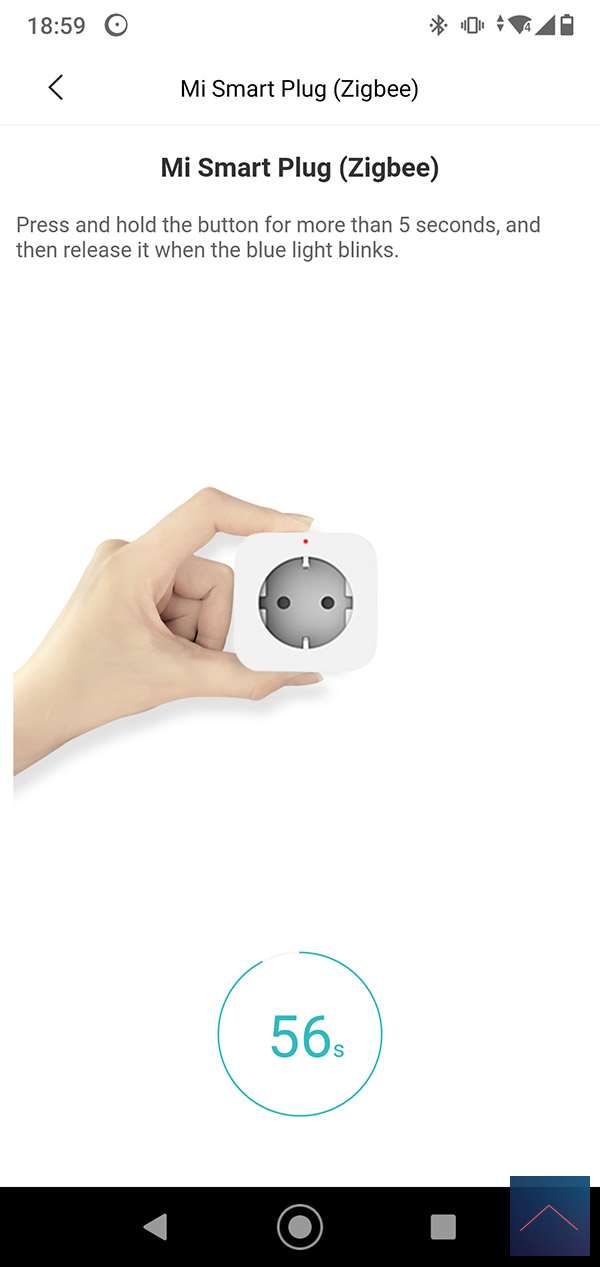After the scan, you will be asked to press and hold the power plug button on the top for 5 seconds. The LED on the front will start blinking. The gateway also flashes and 2x beeps to indicate that it was successful. And this is also the case because I see it appear in the APP.