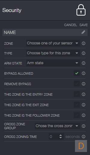 A very extensive alarm panel is built into the ZipaTile. With this you can easily create an alarm system.