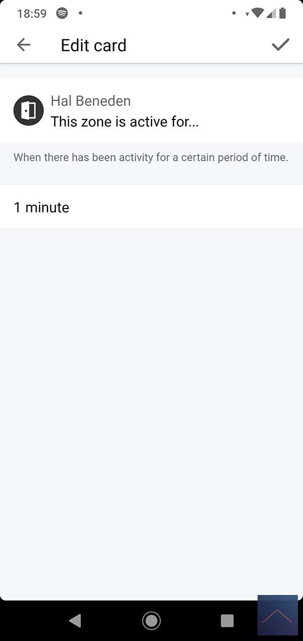 What will we come up with this time :) Maybe nice to use the zone activity of the Homey. The Homey keeps track of what happens in a certain zone / space. We use this zone activity as a starting point. We would like there to be 1 minute of activity and then the lamp to go on. Of course we do not want the lamp to go on unnecessarily if it is not dark. So we use the sunrise tag at "AND".
