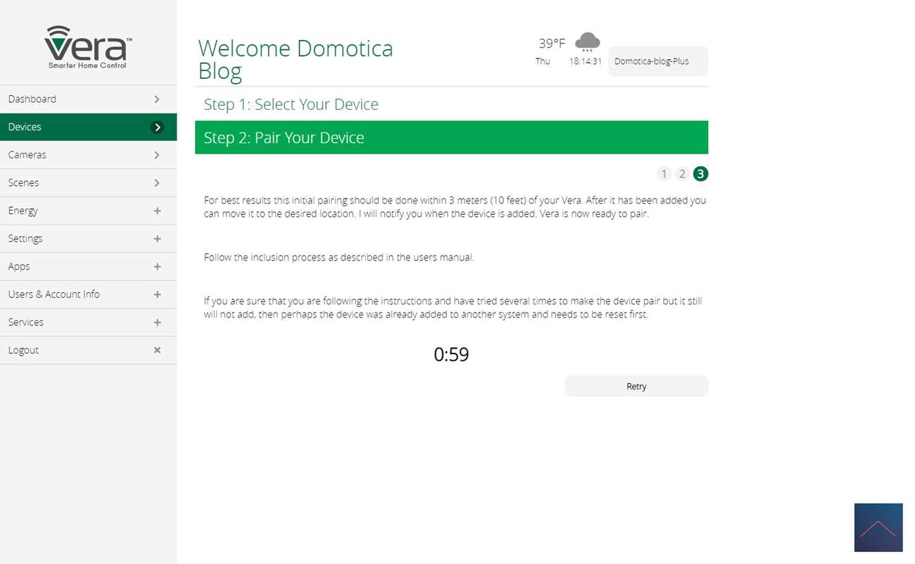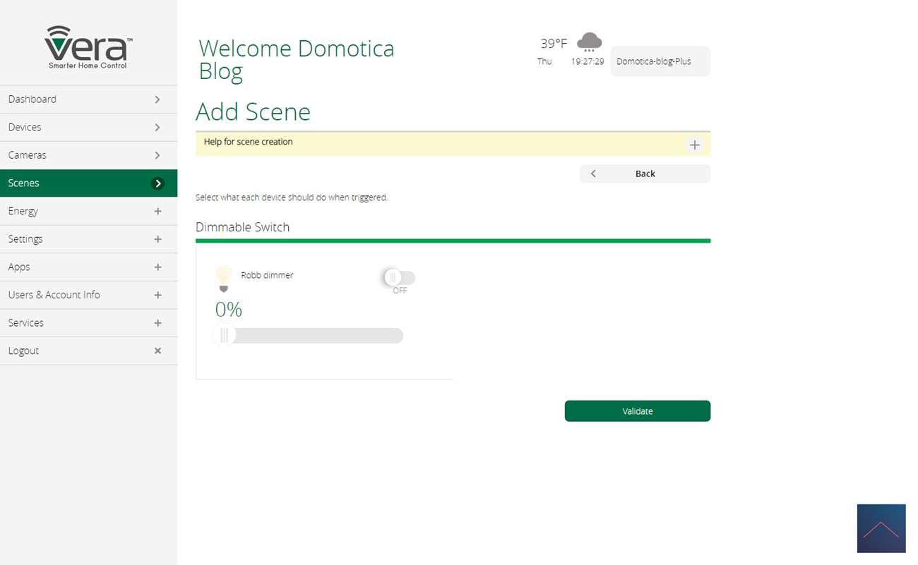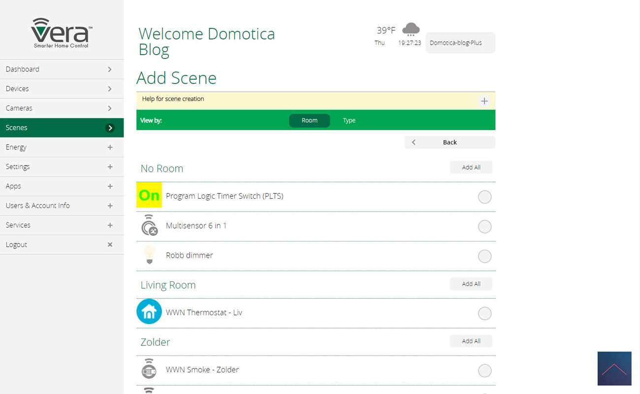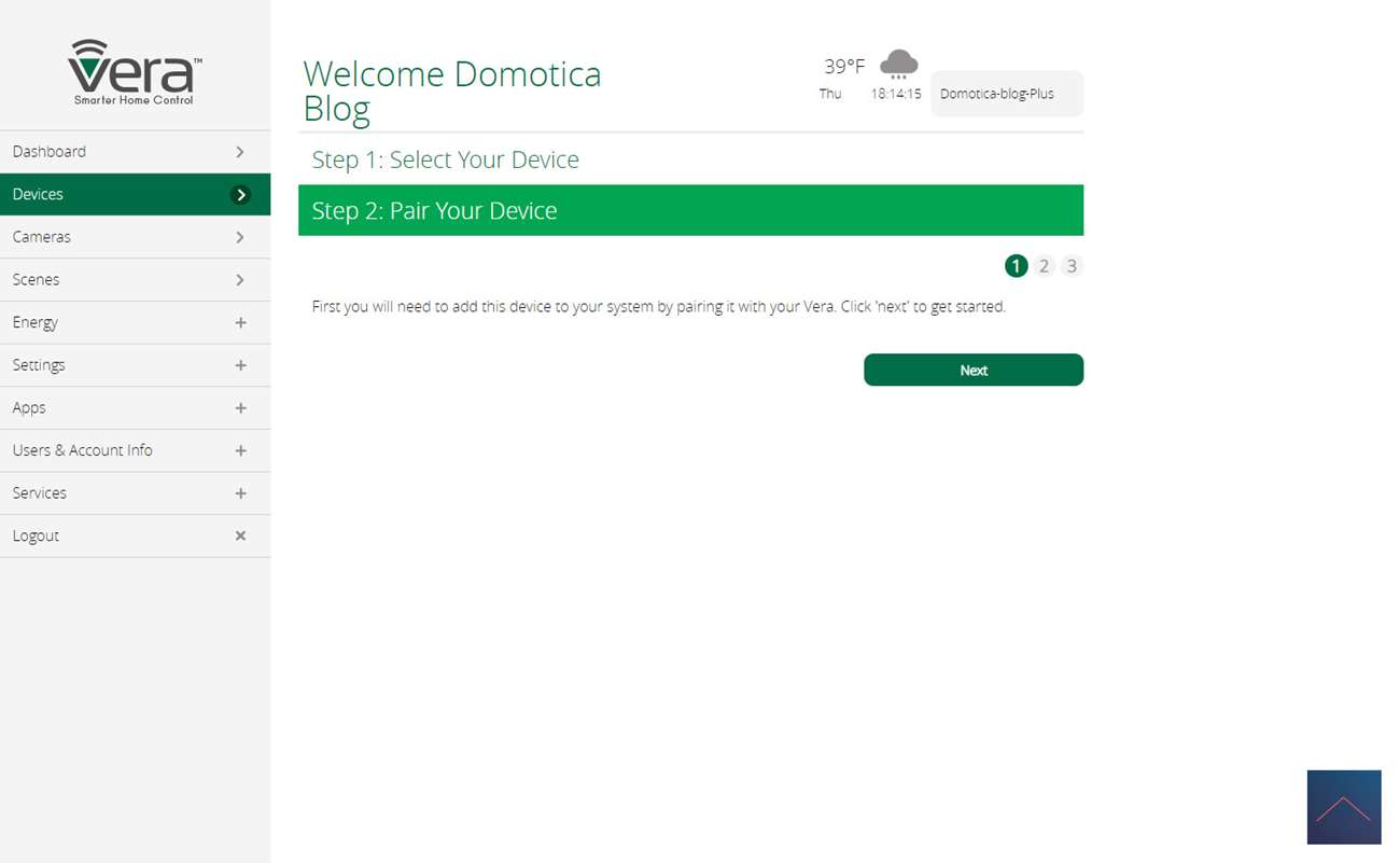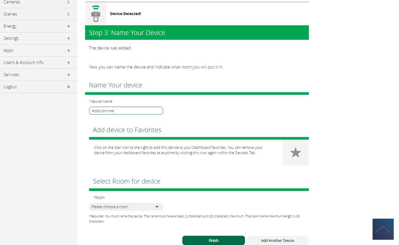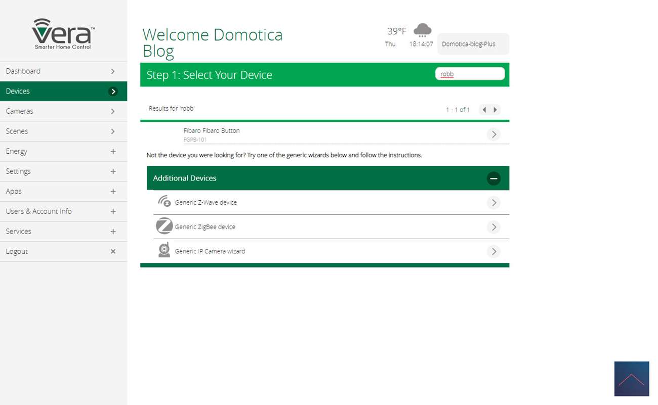 It is better to first log in to the Vera and go to your devices. Then click on generic z-wave device because a search on robbsmarrt will yield nothing. After clicking through a few times, you supply power to the dimmer. Then press 3x quickly with a small screwdriver in the reset hole on the dimmer. The LED will light up and flash to indicate that adding has started. The dimmer will also do a calibration.